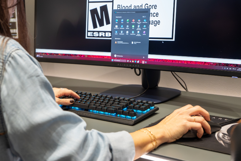 Εγώ έναν σταθερό υπολογιστή με το ντιζαϊνάτο φωτεινό πληκτρολόγιο της Alienware.