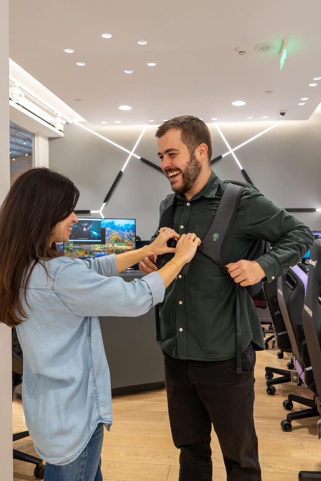 Προτελευταία στάση μας, το κατάστημα της Dell Exclusive Store. Ο Άγγελος ήθελε ένα πρακτικό και κομψό backpack που να χωράει και να προστατεύει το laptop.