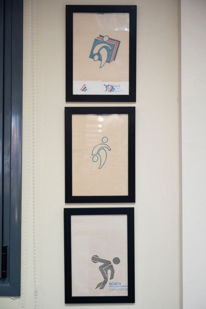 Στην αρχή το logo είχε το όνομα μου. Μου έλεγαν καλά, μπακάλης είσαι; Τότε ήταν της μόδας τα αρχικά. Έφτιαξα μια φιγούρα που έμοιαζε με μπασκετμπολίστα, αλλά ήταν δισκοβόλος. Σχέδιο που έκανα το 1980. Και τα σχέδια εγώ τα έκανα. Θα εμπιστευόμουν άλλον; Είσαι καλά; Ούτε για πλάκα.